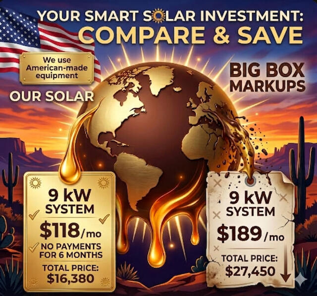 Stop overpaying for solar. At The Solar Brokers, we use our 10 years of experience to do the shopping for you. We’ve negotiated exclusive deals with the best, Veteran-owned installers in the business to ensure our clients save 20% to 45% compared to traditional retail solar quotes. By keeping our costs low and our standards high, we provide top-tier equipment and warranties without the "big box" markup. Vetted, transparent, and proudly serving every city in 🌵AZ, CA, NV, NM, CO + 28 More! ☀️💸 Ask about our No Payments For 6 Months Bonus, $0 down/$0 to install programs, and the newest Hybrid Loan: The lender absorbs 30% in federal tax incentives, and you only pay 70% for your American-Made system! 💸